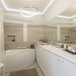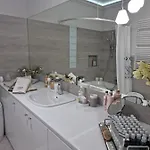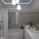 Élvezze az apartman hajszárítóval, háziköntösökkel és fürdőlepedőkkel felszerelt fürdőszobájának kényelmét. Fürdőkád, külön WC és mosdó is található.